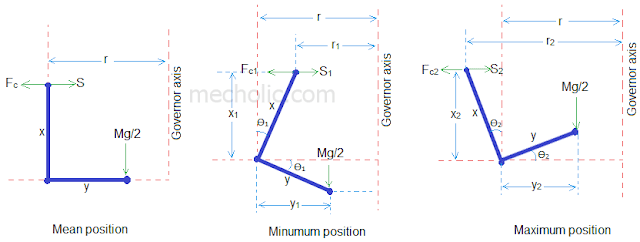 Figure show a free-body diagram of Hartung governor in mean, minimum and maximum position.